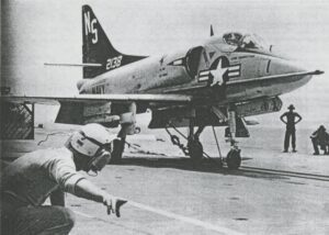Arriving in the Gulf of Tonkin February 4th 1962, the USS Kearsarge LHD-3 made military history by landing the first contingent of US Marines on the shores of South Vietnam using helecopters in place of amphibious landing craft. We had personal in South Vietnam in the middle 1950's but this was the landing of combat marines to the shores of South Vietnam. Our job was to provide close air support to those Marines onshore. The real battle had begun, the battles of Olongapo Zambales were soon forgotten, as we had a job to do. The A4D Skyhawk was designed for close air support. My aircraft flew in the first wave of sorties from the deck of the Coral Sea. I was awarded the Armed Forces Expeditionary Medal for my participation in this initial action in Vietnam.