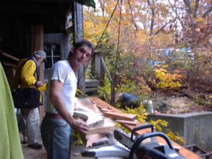 The fall of 2003 took me out to West Tisbury on the island of Marthas Vineyard to visit my mate from the cod fishing days. Peter was my mate for many years on F/V LAURA. With his own hands Pete had built a large boat house complete with mezzanine platform and all the tools to completely restore wooden boats. On windy winter we would go into the woods and cut wood suitable for making knees. Pete cut all the knees for PAVITI TERN and did not charge me a dime.