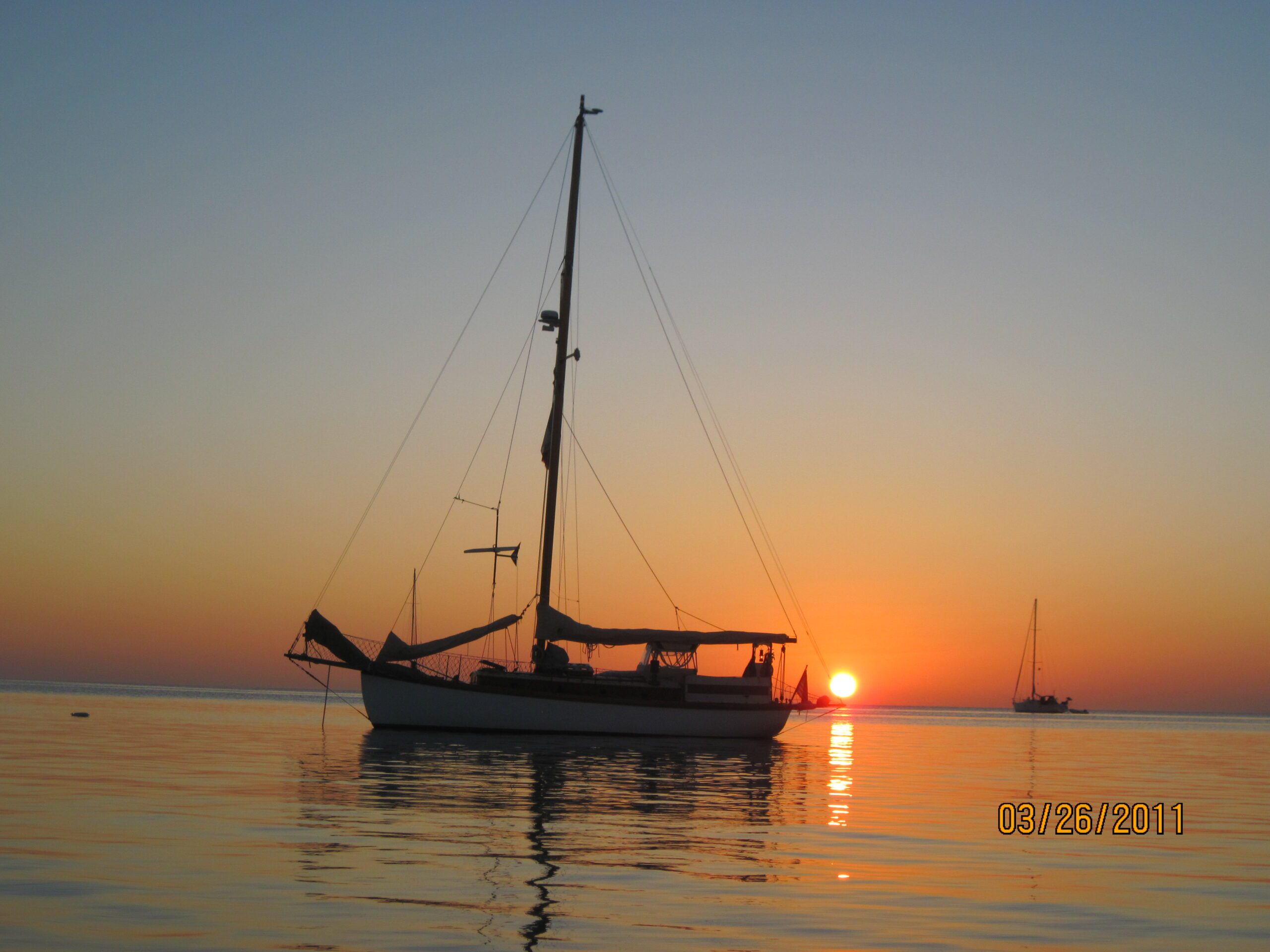 Picking my head up and looking out at the harbor wiping the tears from my eyes, I was feeling embarrassed, deeply depressed and wondering what is this life all about? Head hung low, dragging my feet on the cement pier, I stumbled when the cement pier turned to wood. There she was, tied to the pier, an ugly duckling dressed in green with a 'For Sale' sign hanging from her boom. I thought to myself "I could live aboard this boat". When I called the the number on the sign the owner, Robert Sanborn, told me where I could find the key. Going aboard, I found the key hanging in the lazarette. Opening the companionway hatch, the odor was a telltale sign that no one had been aboard in a very long time. Going below, first thing I noticed was the cast iron coal stove with FISHERMEN cast in the oven door. I was absolutly sure this was a sign that I had found my new home.
