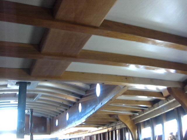 The sixty original steam bent white oak 2"x2" ribs as well as the butt blocks were fastened to the hull with the iron clinch nails pictured above. All the frames and butt blocks had rotted due to the tannic acid in the oak reacting to the iron. The replacement of these rotten frames was made possible by the fifty steam bent oak frames installed by GANNON & BENJAMIN, Boat-Works in Vineyard Haven MA during Bob Sanborn's restoration.